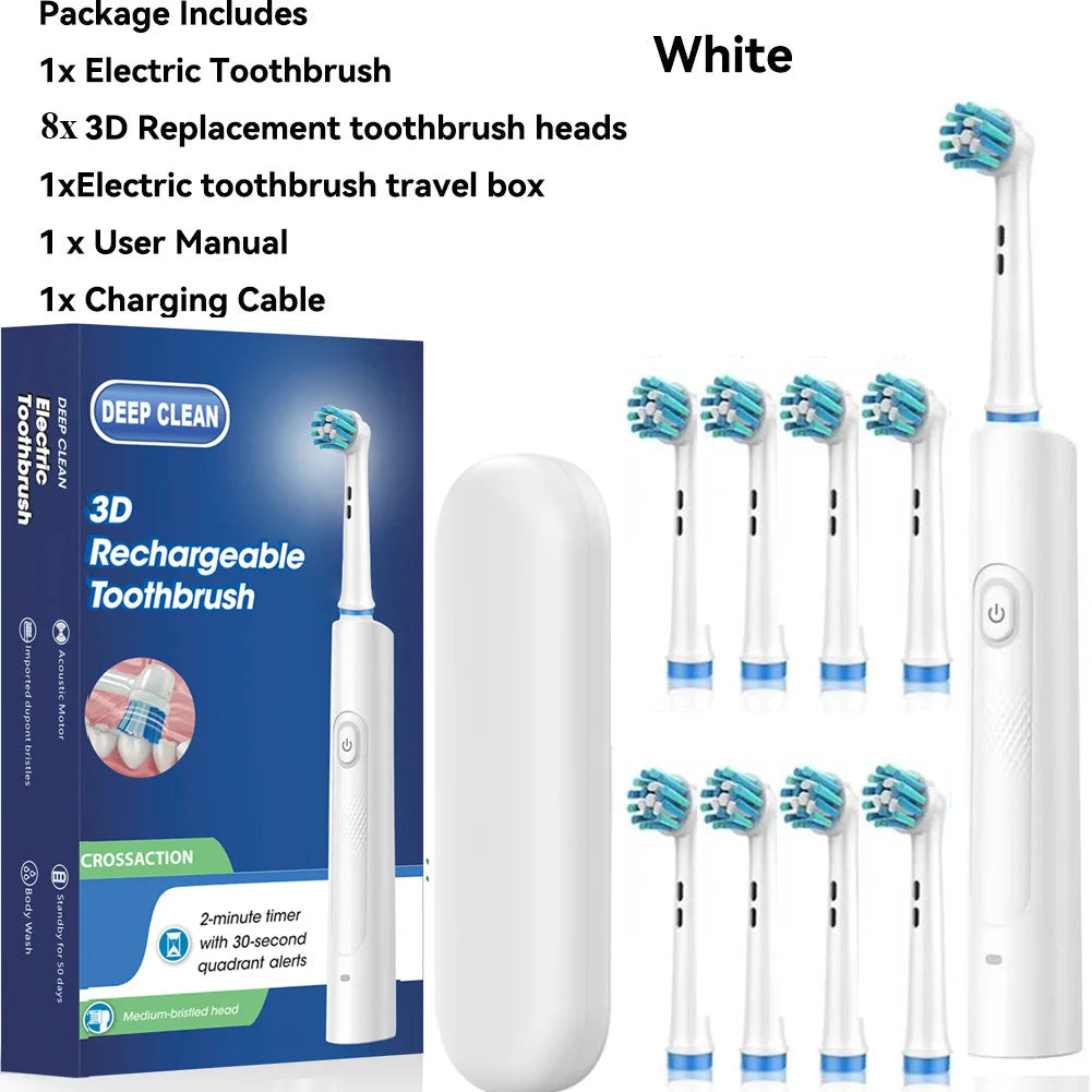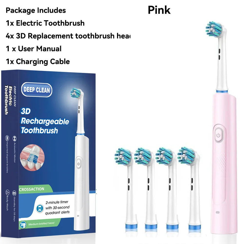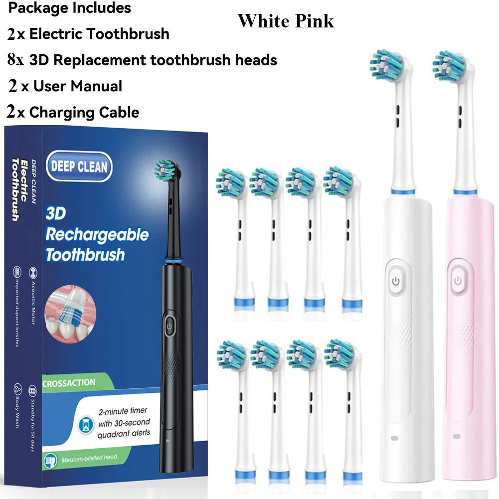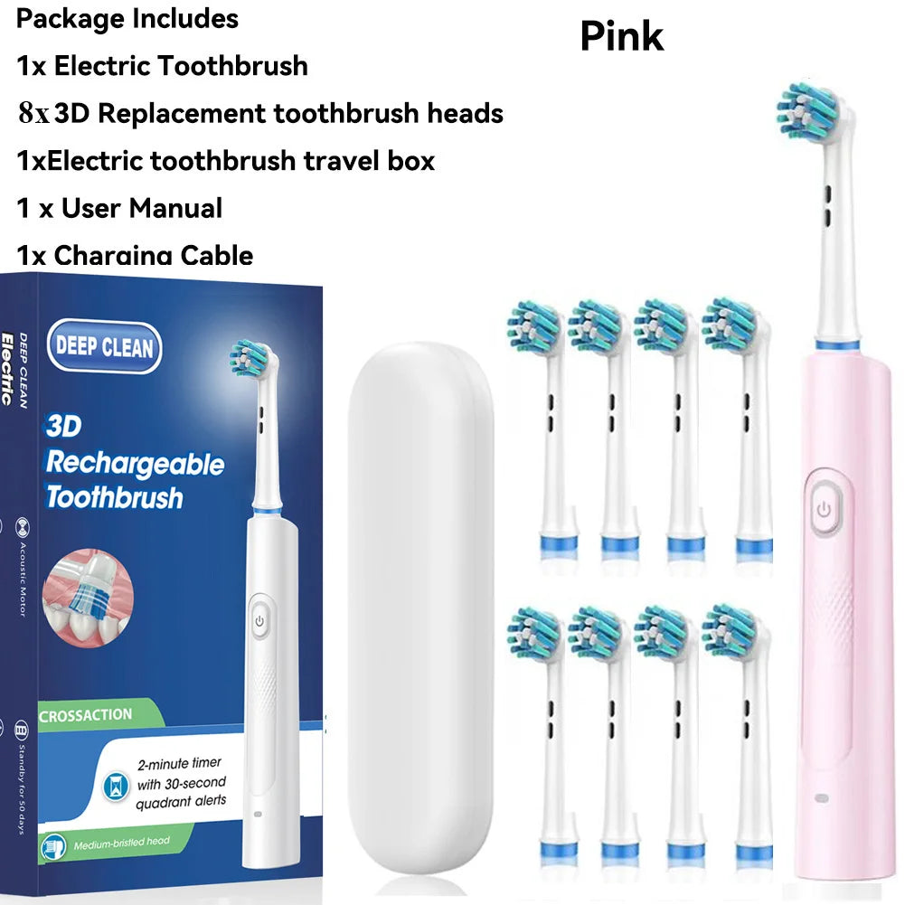 【Clean More Plaque】For a clean that wow , electric toothbrush delivers an impressive 10000 --19000 high-frequency vibrations per minute , removing up to 300% more teeth stain than a regular manual toothbrush. rotating electric toothbrush goes above and beyond by effectively cleans more teeth stain compared to a regular toothbrush. This exceptional performance is attributed to its robust motor, innovative windmill design, and precision-crafted arc-cut bristles.