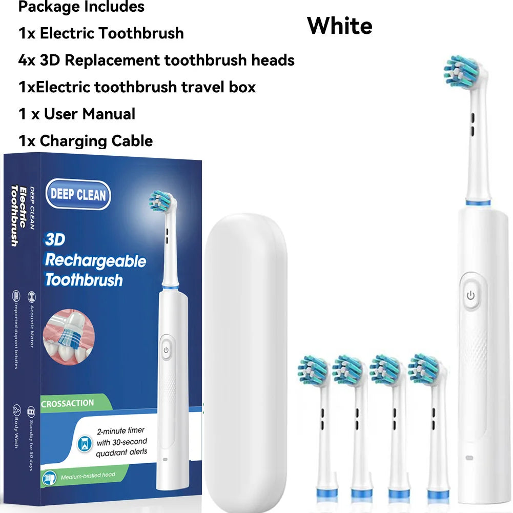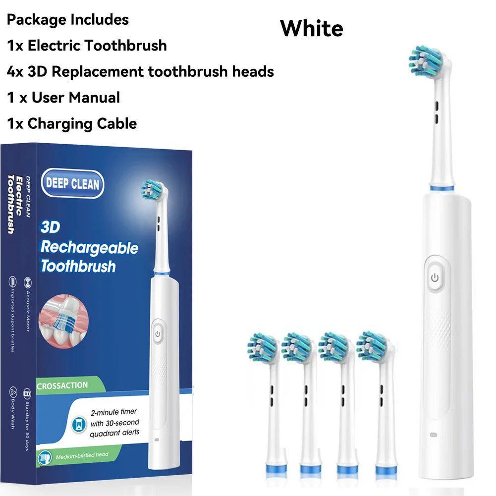 Obrotowa szczoteczka do zębów, czarna/biała, 4 końcówki, ładowana
